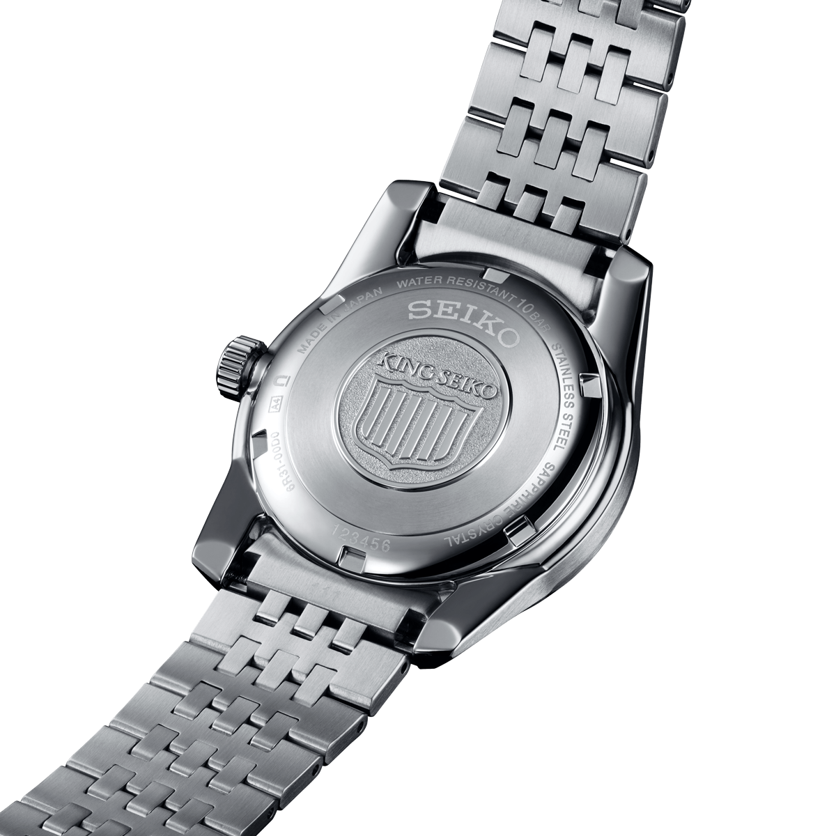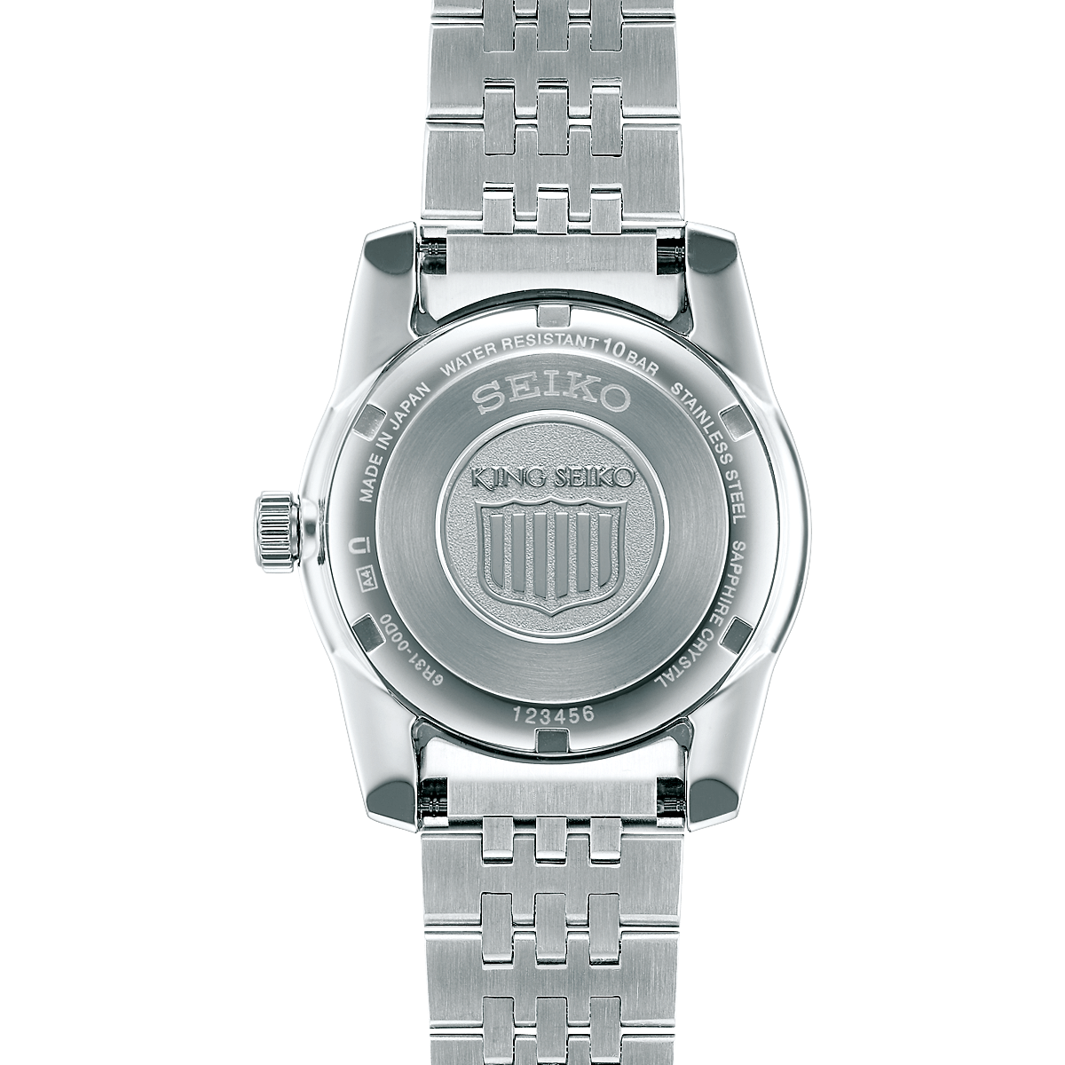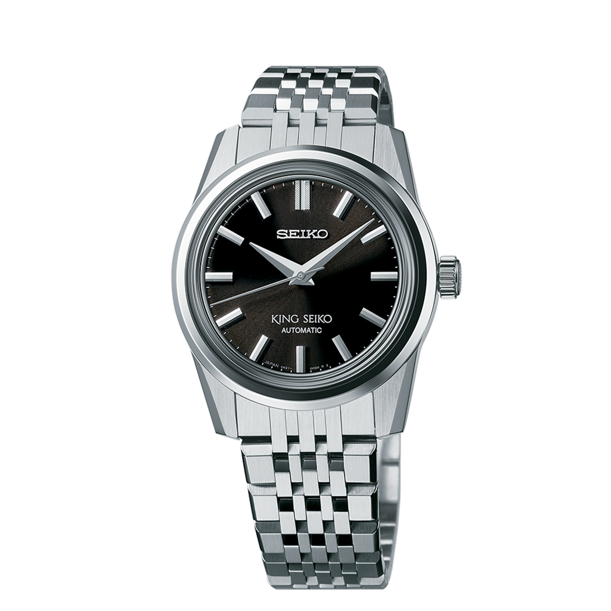 This version is updated from its original inspiration with a newly developed slim structure combined with a sapphire box glass, for a case depth of 10.33mm, the slimmest of 6R caliber models. It features a King Seiko crest mark on the crown and case-back and the bracelet is inspired by the original 1960s design through a combination of mirror and hairline finishing.